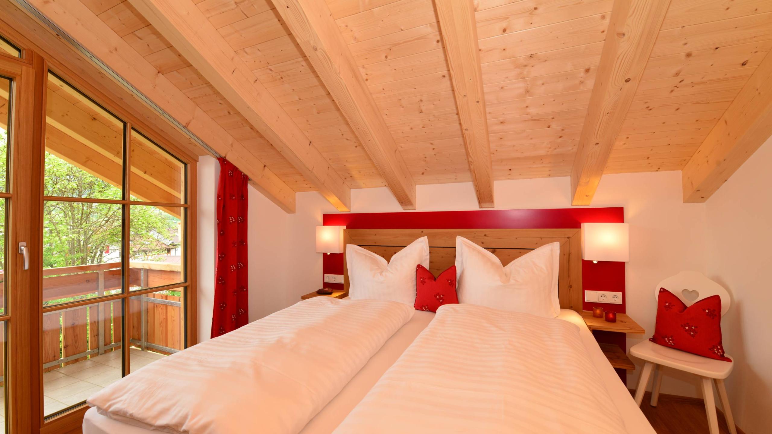 This is the life! The two balconies let plenty of light into this elegant two-room apartment on the attic floor – the sun and sunset (“Abendrot” in German, which gives the apartment its name) can be enjoyed in all their glory from the south- and west-facing balconies. The visible roof structure, the lovely Alpine lodge style, and the cosy furnishings will make your holiday perfect.
